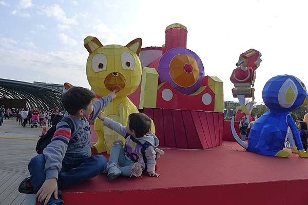 不同於以往這次台北燈節的展出從2/7展出至2/16日閉幕。今年的天氣真的很奇特,忽冷忽熱的,我們是趁著閉幕最後一天2/16日到花博圓山去賞燈。早上睡飽飽然後坐捷運過去,這天天氣超好的!