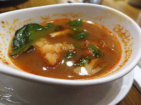 我最愛的酸辣海鮮湯,大家都說它的後勁很強,我覺得比上次喝好像更辣一點,但還是好好喝喔!裡面除了有各種海鮮以外也有鮮菇,濃濃的香茅再搭著酸辣的口感,好想再來一碗。
