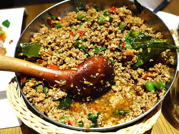 就是這個打拋豬讓大家吃撐了,因為大家一直加飯(這也太下飯了吧!)服務人員會先把飯裝到盤子給你,再把打拋豬肉放置盤子與白飯一起。