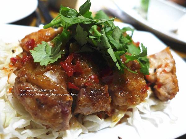 煎好的松板豬上桌了!煎的香噴噴,跟特製的醬汁沾食著吃,也是很不錯的口感。