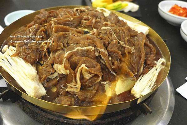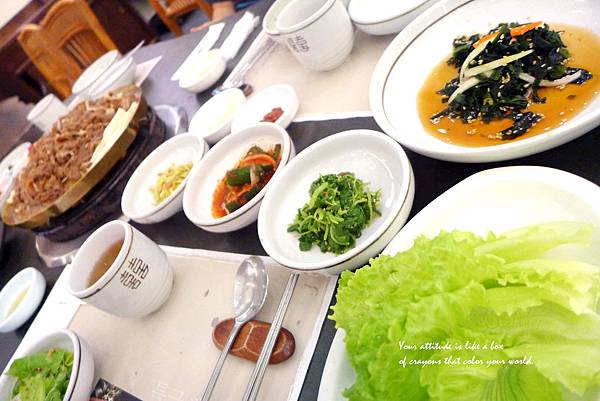 其實光吃肉就很飽了!又加了一個菜盤。應該不用再點石鍋拌飯。