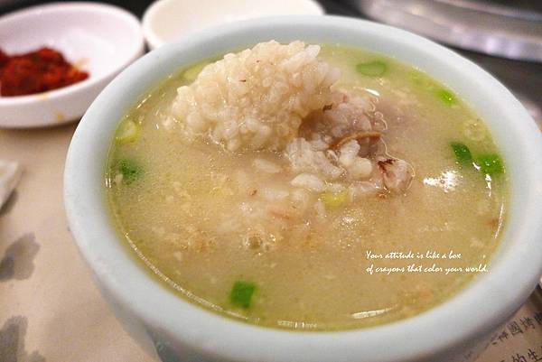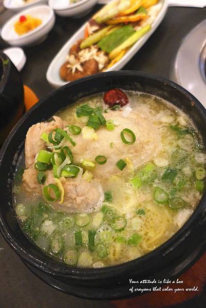 特別點給寶貝喝的營養滿滿喔~但是我覺得正宗的韓式料理店其實人蔘雞湯喝起來味道都很清淡耶!可能我比較重口味,湯是好喝,但是裡面的米飯好多,吃下去又更撐了!