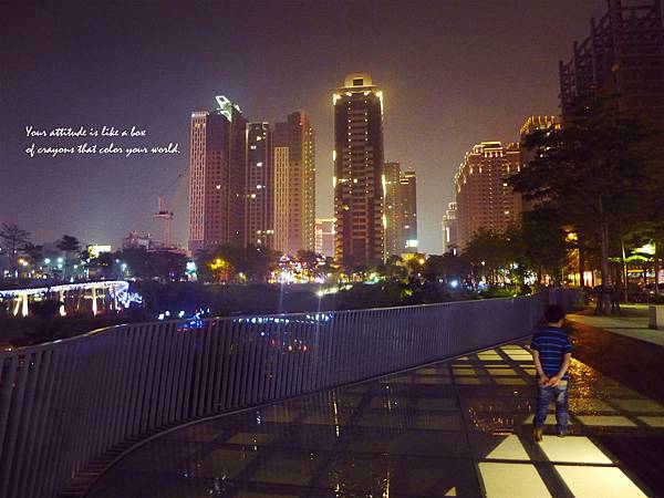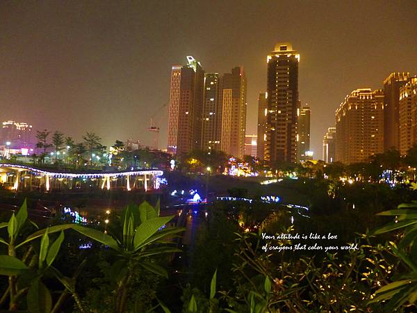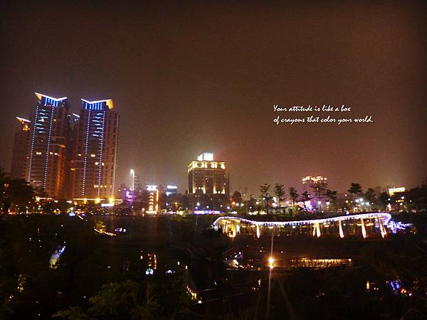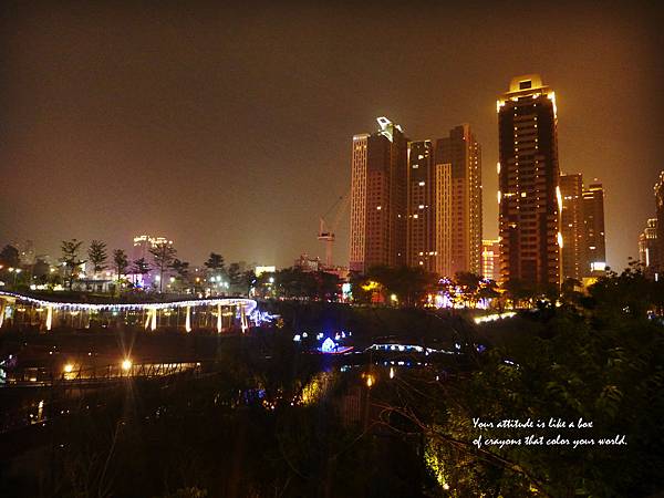 晚上的夜景真的好美!我覺得比白天更有看頭。五光十色的燈光繞著秋紅谷的週邊形成一個夢幻的城市街景,能與所愛的人在此散散步真的好浪漫喔!