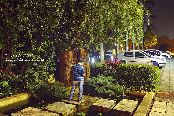 門口還有小池塘,一整片的樹木林立,來這邊很有渡假的心情^^