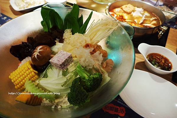 這是他們的菜盤,我覺得用料很實在,而且還用白木耳及黑木耳,健康又養生。其它還有芋頭、香菇及南瓜、青江菜、高麗菜、豆皮、金針菇、玉米、蘿蔔..。