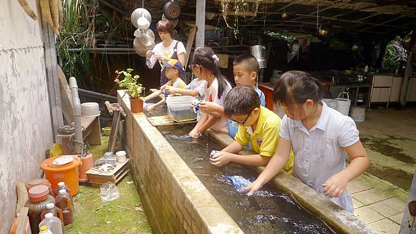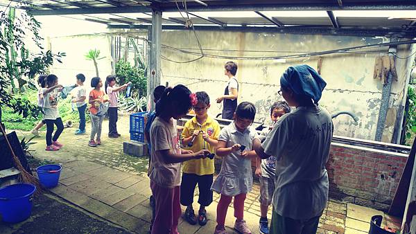 園主還將陽明山傳統製藍植物"大菁"復育種植,自製染料,作為植物染DIY的材料,小朋友都玩的不亦樂乎呢!