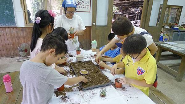 仙人掌的盆栽製作。小朋友今天玩到很多樣哩!