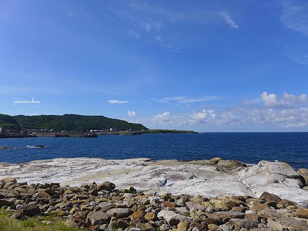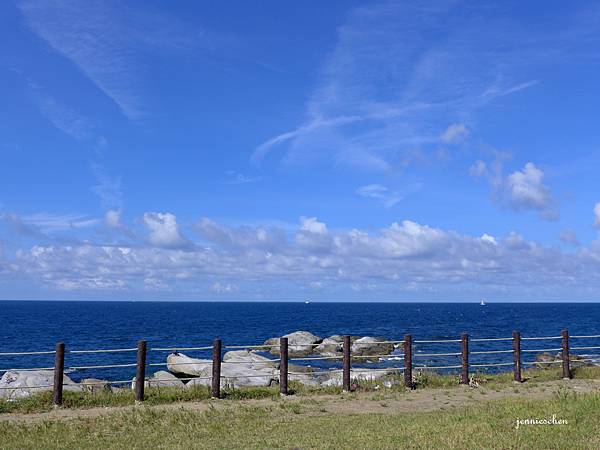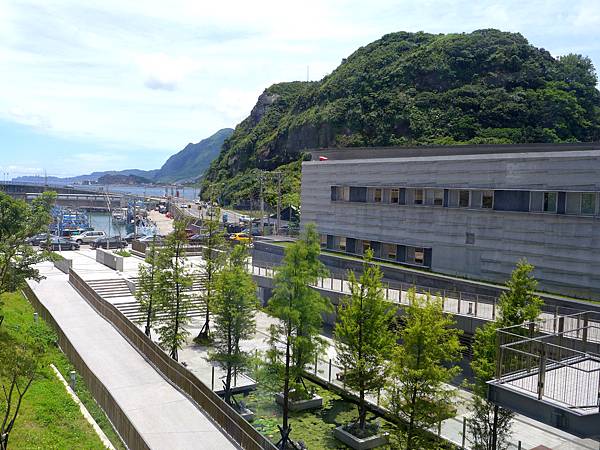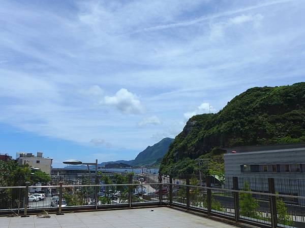 海科館外面的風景,藍天青山對映,遠處是一片汪洋大海。