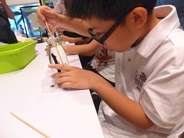 然後定點定時也有手作DIY,由老師一個步驟一個步驟教小朋友認識綠藻。