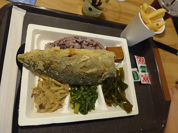 中午只好在餐廳快速的吃一吃了!這隻魚是用炸的,本以為是蒸或煎的所以有一點失望。我吃的是雞腿排,有聽到旁邊的大孩子在抱怨雞腿太小,唉...觀光區的餐廳好像都不怎樣.....。