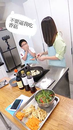 我是個怕麻煩的媽媽,光是備料材料太繁瑣或是不好買我總是望之怯步,但是今天這樣做下來覺得哇!好簡單喔!!不過寶貝從小就不愛菇類,當開始炒菇類時看看他驚恐的表情