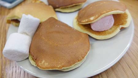 最後一道是甜蜜棉花糖銅鑼燒。我第一次用平底鍋煎鬆餅,印象中鬆餅不是都用烤的居多?我覺得好有趣喔!