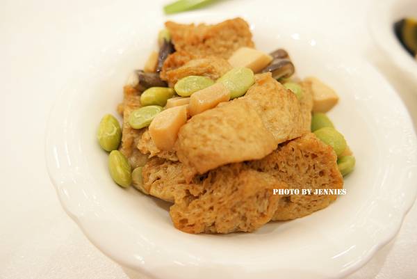 今日訂席七點半,桌上的小菜有皮蛋及魯豆皮,裡面吸附滿滿的湯汁,讓人吃了還想再吃。