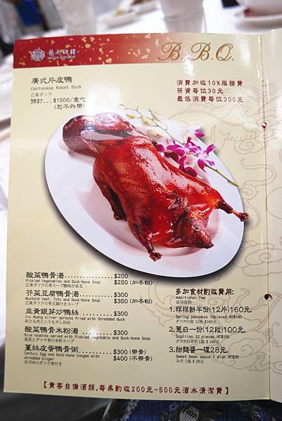想吃烤鴨嗎?訂位時就要事先預訂喔!精選宜蘭在地的北鴨,服務生在切鴨肉之前會事先問我們的意見是要皮肉分離?還是要分離與皮帶肉各半?就看個人的喜好與選擇囉!