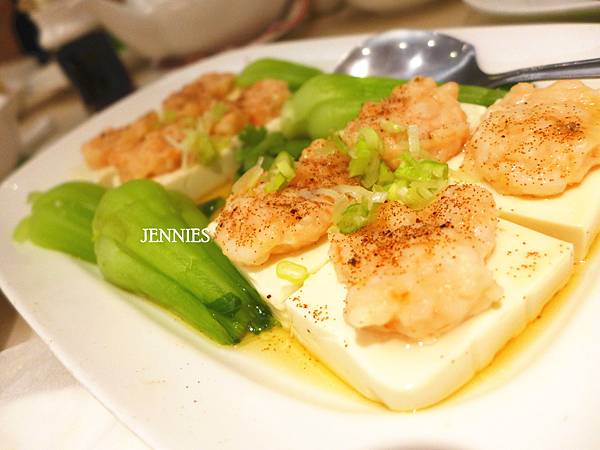 富貴蝦卵燒豆腐煲,也是很清爽的料理,白細的豆腐上面鑲著蝦子,一起吃下去的味道帶著蝦子的淡淡甜味與香氣,而豆腐的柔嫩在味蕾上留下美味的痕跡。