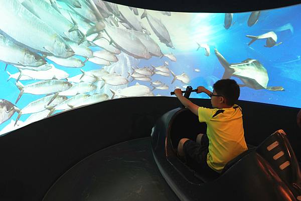 海科館一樓為兒童廳、深海展示區及特展廳,不過每次我們都是從三樓開始逛起(因為售票處也是在三樓);四樓有彩繪餐廳、區域探索館,從一到四樓就有不少東西可以看,通常都是由主題館開始,整個海洋博物館其實佔地很大,從漁港二街過來是區域探索館,從八斗街過來是海洋劇場,北寧路這邊還有教育中心,八斗街入口則通往主題館(我已昏頭~)