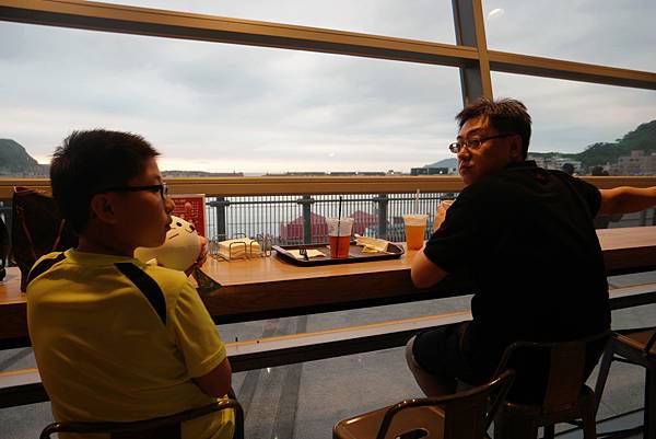 下午二點多才臨時決定要來逛逛海科館,離開主題館也五點多了,然後我們就在區域探索館的二樓看海景,坐在這裡真的好悠閒,一片窗景一幅畫;本來以為今天的天氣不好看不到落日夕陽,而且今天原本出門時原本只是要去附近吃個麵就回家,所以穿的很隨便!看到這裡美麗的漁港風情我就後悔沒有穿美一點出來拍照...