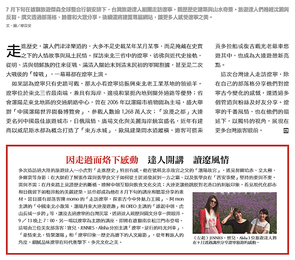 ●遼寧省旅遊發展委員會「遼寧旅遊台灣達人踩線首發團」體驗撰寫