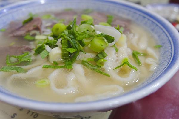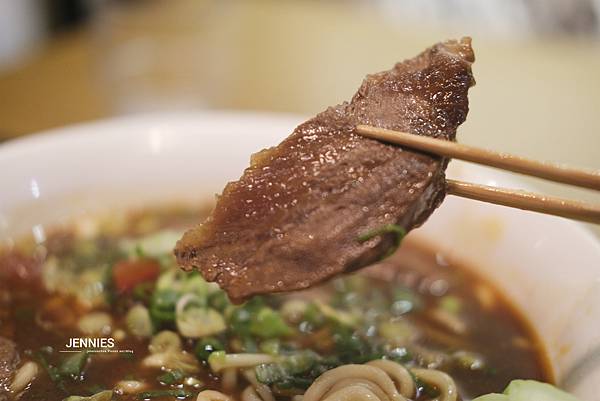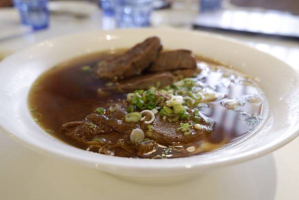 他們家的牛肉湯看起來很濃厚,喝起來清爽不膩,麵條也還不錯,但對於喜歡吃重口味牛肉麵的人來說似乎味道不是很夠,倒是牛肉部份燉的很軟,吃起來帶有咬勁,我還滿喜歡牛肉的厚度跟咬起來的口感。