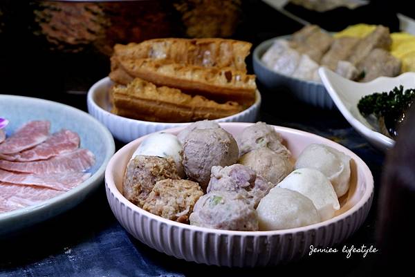 今天好不容易拍完後我的肚子呈現饑餓難耐狀態,光是聞到湯頭還有面對滿桌子的豐富菜色我就已經快崩潰!!雖然說丸類容易有飽足感,但我不管!(任性)因為印象裡老撈的綜合丸也很有看頭,裡面有芋香丸、芹菜丸、福州丸、川丸子、牛肉丸跟魚包蛋各兩顆。我最愛的就是芋香丸了,咬起來裡面的料餡紮實,好想問老板在哪買?