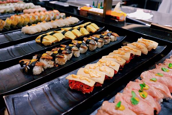 提供各種魚類壽司,我拿了一些不同口味壽司,沾上芥末跟醬油真是好吃!!