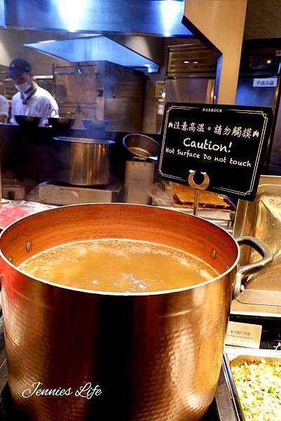 每一個餐檯區就相當於一家主題餐廳的廚房規格,每一區的專業廚師至少5-6名。像是海鮮日料區就有多達20餘種生魚片、握壽司、手捲和各式冷麵、漬物。而燒烤區更不惜重金自澳洲進口高檔牛排館專用的專業烤爐,供應現烤牛肉、麵包和披蕯。港式燒臘區更可媲美一家港點餐廳,各式蒸籠、燒臘、烤鴨、燉湯應有盡有。