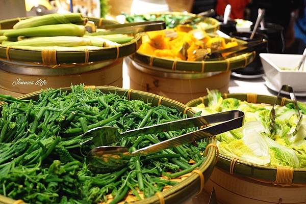 也喜歡這樣燙過的蔬菜!吃原味也可以,旁邊也有提供沾醬-