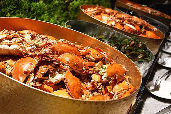 餐檯上可見到3種蟹蟳類、8-10種生魚片,大蝦、花枝、蛤蜊、淡菜、章魚、風螺、扇貝,依產季不定期更換食材,品項豐富度堪稱全台之最。