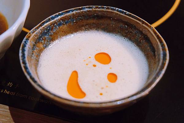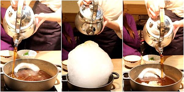 日式醬汁淋上去後棉花糖也慢慢跟著融化,帶有些鹹味的湯底再添入棉花糖,搭配昆布鍋底口味上都可以再調整。