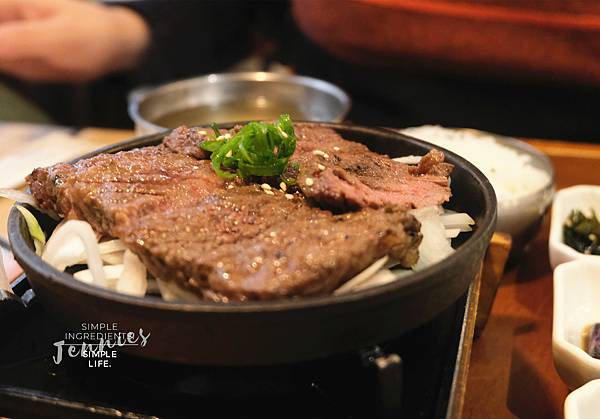 韓國烤肉通常吃肉會用生菜或紫蘇葉包覆著一起食用,在生菜裡夾上一塊烤肉,沾上韓國大醬,或是夾一點辣椒蒜片,也可以包上海苔,米飯,裹成一團就可以食用,生菜的清爽與烤肉的香濃,讓人吃了會上癮!櫻花豬五花讓我印象頗深刻!沒想到會這麼好吃!!