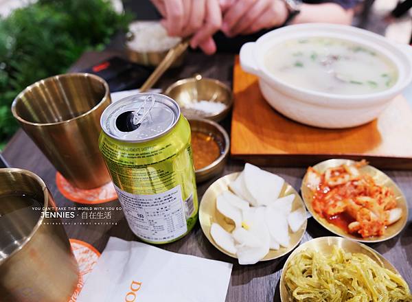 除了有上面配好的金蔘燉雞湯底及天醬牛肉湯底如果你想加點其它的料還有小米酒、燒酒、小米飲料、金蔘牛奶、鮑魚、干貝及扇貝。在台灣好像比較少看見人蔘燉雞湯底的火鍋而且這火鍋裡面還加了三點蟹跟干貝,三點蟹肉質細軟一般都是拿來當下酒菜,而且它不是養殖蟹是屬於廣大海域中生長的天然海蟹,吃起來口味當然更加鮮美![]()