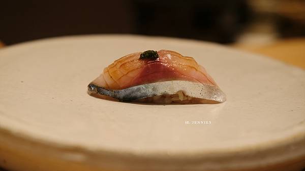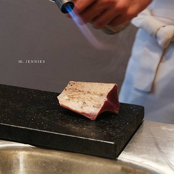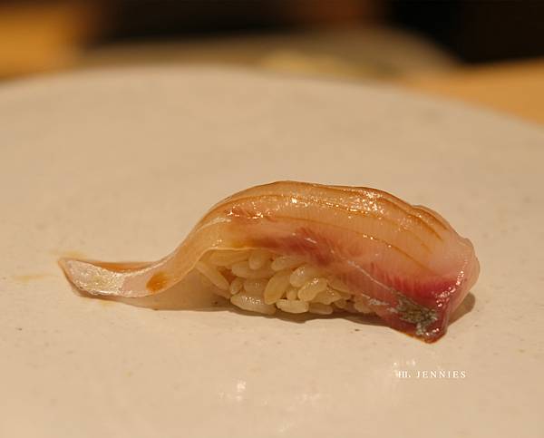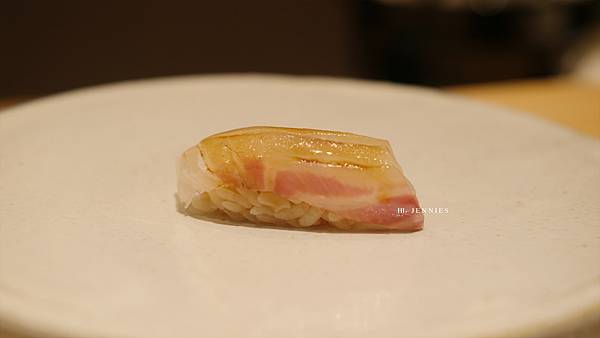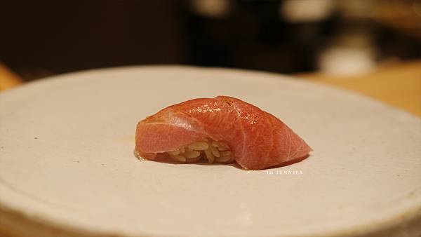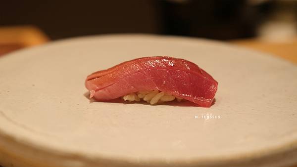這天食用的是在日振島捕撈的鮪魚,中腹肥瘦均勻帶點赤身的酸感跟油脂的香甜。