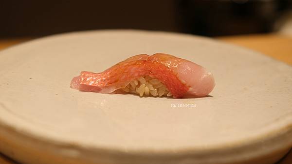 有深海裡的白富美之稱,廚師使用熱水霜降過後保留魚皮的膠質與皮下脂肪呈現;盛產季節在12月至隔年的三月,油脂含量適中,味道鮮美。