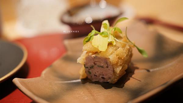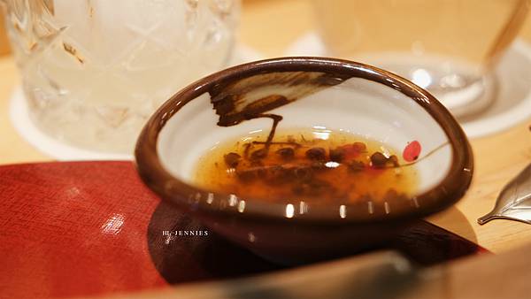 想起了前幾年與先生去日本旅遊的情景,湯葉也在幾次的旅行飲食中出現,甚是想念。「湯葉」為豆漿加熱時表面凝結一層的薄膜,輕輕刮起形成一層又一層的腐皮,通常會加入烏龍麵或鍋物裡食用,這邊與玉子蒸相融合,濃醇的豆香與玉子蒸軟嫩的口感在嘴裡慢慢化開,暖意上來,別有滋味。