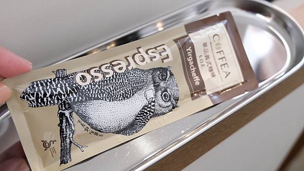 發現也有其他顧客詢問咖啡豆的購買。老板娘分享著他們家有液態咖啡包,我前年買過UCC膠曩咖啡,直接撕開包裝倒出來就能喝,但味道我不是很愛。