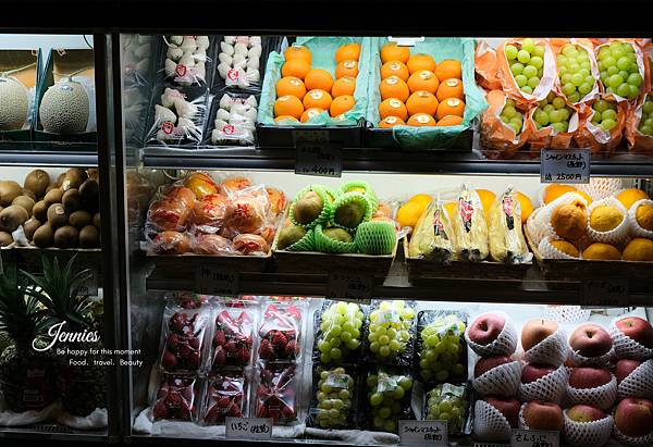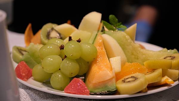 店內剛好有人點了現切水果盤(一盤3000日圓),裡面裝了滿滿的高級水果,葡萄、哈蜜瓜、奇異果、蘋果、葡萄柚...晚上就算不吃晚餐叫我吃水果盤我也可以耶!!