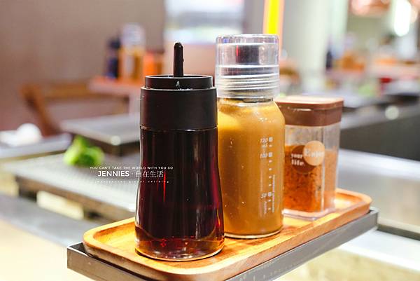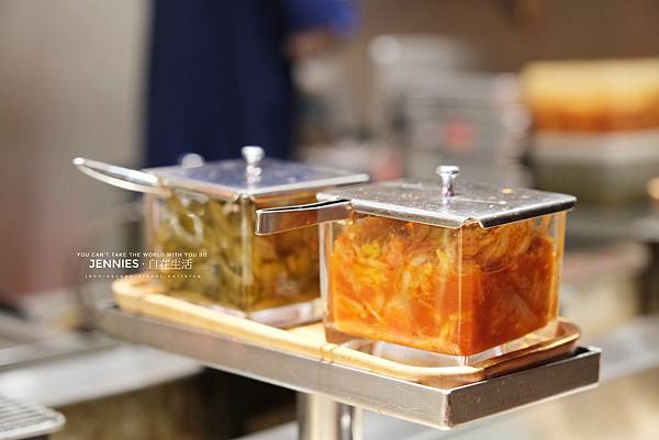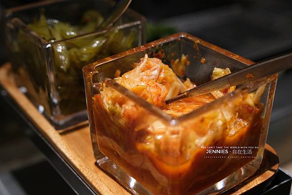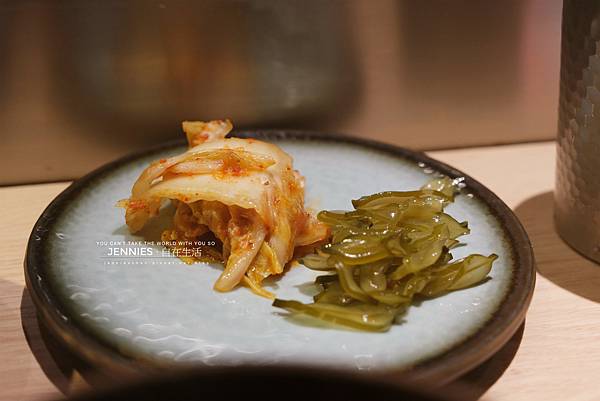 小菜就放在手邊的小餐臺上面,吃完都可以隨時再添加。好喜歡他們家的泡菜,不會太鹹酸度也剛剛好,真的很好吃!白飯還沒來我已經吃掉快半瓶了。
