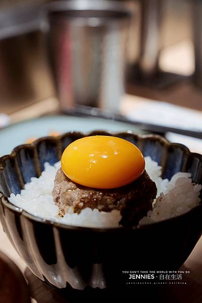 這次的吃法是像上面這張圖讓蛋液流到白飯上,餐廳提供日式醬油,可以淋上一些在白飯上,蛋黃與白飯攪拌開來再混著醬油的香鹹,實在太好吃了!