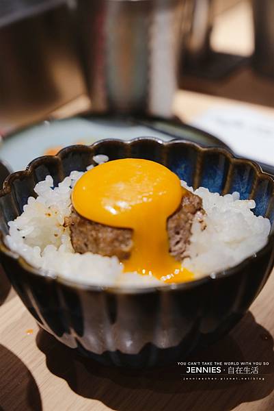 雖然三個人只獲得一個豬肉漢堡排的贈送,但說也奇怪!我這次吃的比上次還要飽。實在很撐啊!使用日本新瀉的越光米烹煮白飯,除了粒粒分明飽滿,就算涼掉後也好吃!吸附了牛肉滲出來的汁液與蛋液,每口都香滑無比,讓人意猶未盡。戳破蛋黃讓它慢慢流下來的畫面好可愛呀!