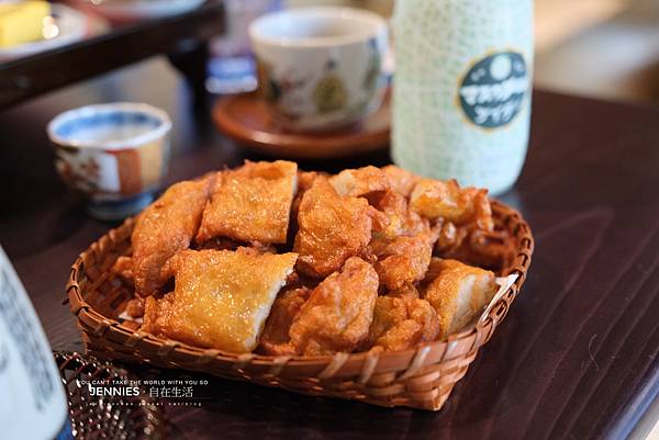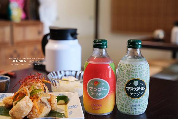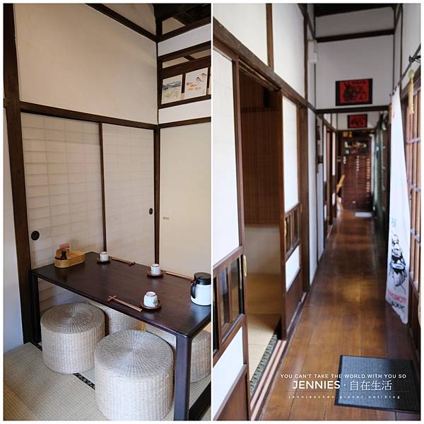 我們走進這棟老宅,彷彿遠離了城市喧囂,門口先是脫去了鞋子,小心翼翼的踏進這裡。擦的光亮的木地板讓人慢下了步伐,從長長的廊道往裡面走,每個角落空間自成一片風景,各種古物收藏讓人目不暇給。前門進來就是櫃台,往右邊的方向則是用餐區,每一間容納的人數都不一樣。我們被安排至一處包廂,可容納八個人的坐位,還面對著綠意盎然的庭院,坐在草編椅上環顧週圍,各種收藏令人感到生動有趣!