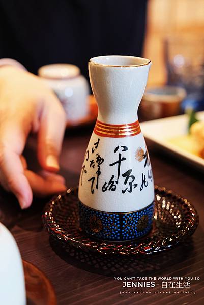 清酒(120ml)送上來的時候心情愉悅,慢慢欣賞酒器,雅緻的東方之美及充滿藝術的字體,讓品飲這件事更顯得浪漫了。慢慢品飲一小口,酒香甘醇餘韻悠長。