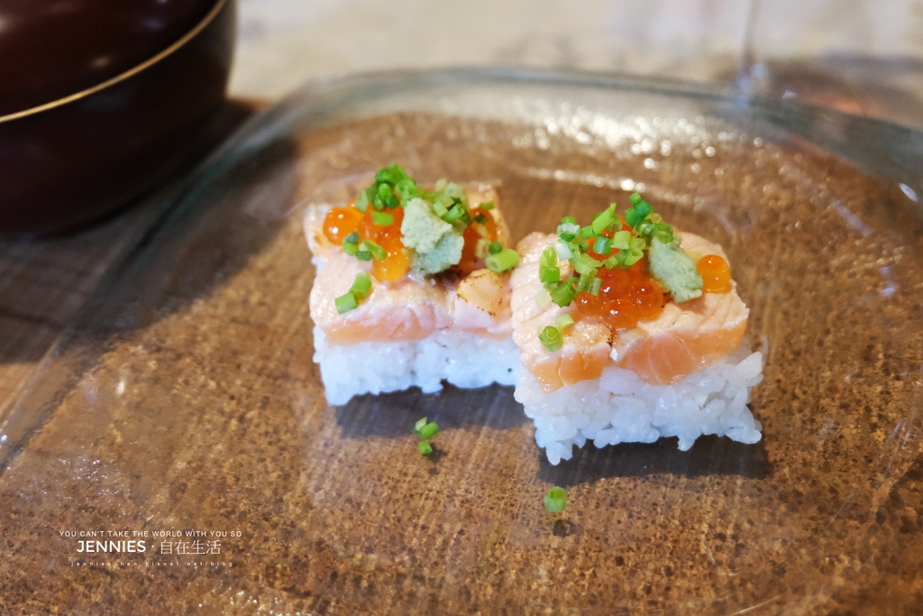 不吃生食的話可以請廚師炙燒,用餐之前餐廳也細心詢問用餐的喜好,柔軟的鮭魚搭配永齡147號香芋米,口感香軟帶有淡淡芋香,一口將鮭魚親子丼放入嘴裡,鮭魚卵噗吱,山葵的辛辣刺激了味覺,這時再也顧不得澱粉的熱量啦!!