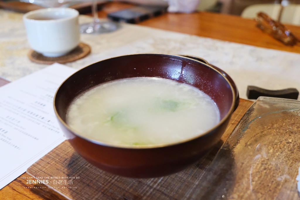 以鯛魚及膠原豚骨高湯慢慢熬煮,湯頭鮮甜清潤還有滿滿的膠原蛋白,這一餐也提醒著我們好好善待自己的身體(也包括心靈的部份)