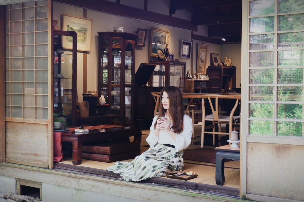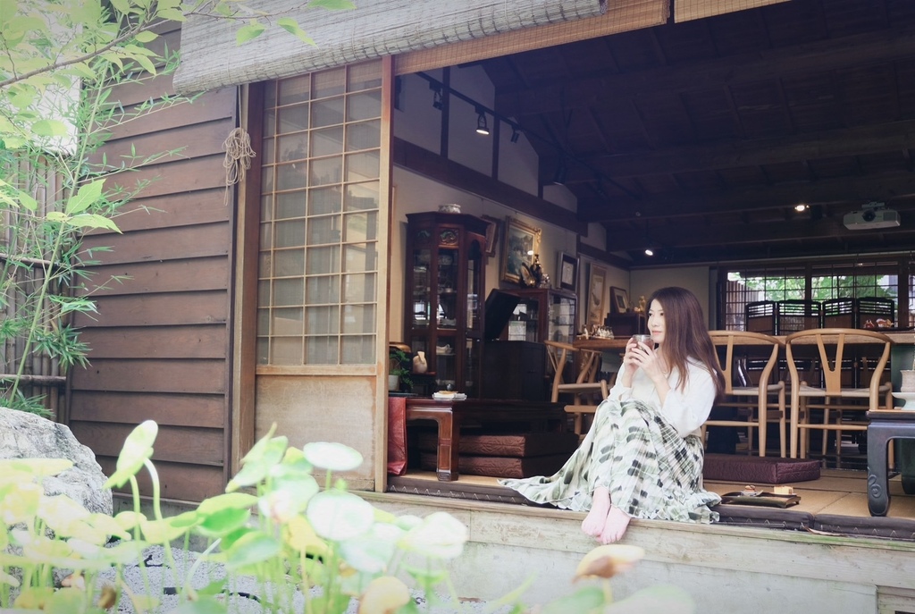 坐在日式拉門前方,瞬間有來到日本的感受!!老屋有一種特殊的氣味,大量的木製家具還有庭院草綠上的濡溼以及土壤散發的氣息,此刻暫時遠離屋外的紛擾與羈絆;