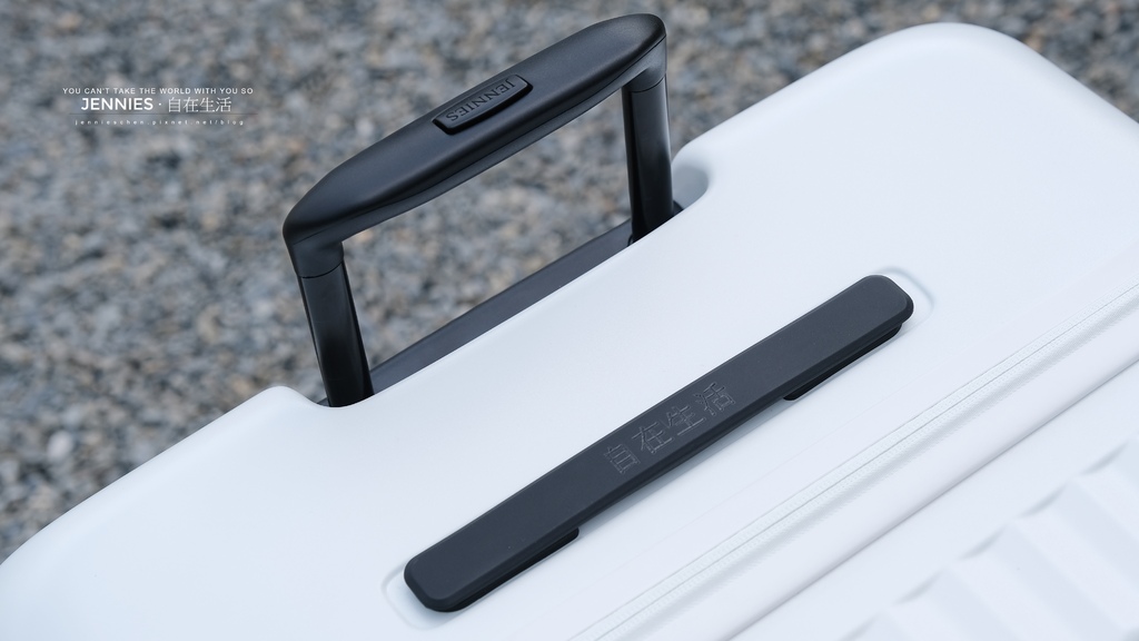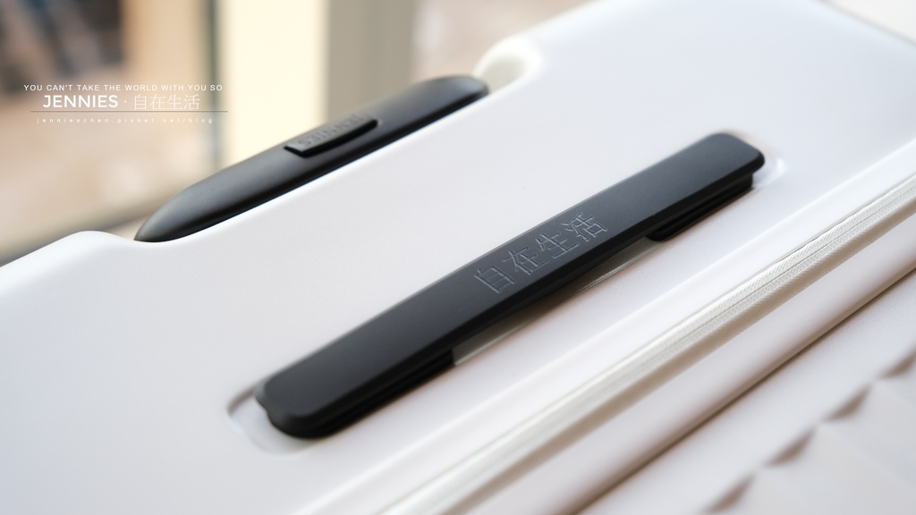 因為我常認錯行李箱,專有鐫刻服務不但能刻上自己的勵志小語也能將名字刻在上面,不過這個服務需要另外收費訂製,可以在頂部提把,拉桿按鈕,側邊提把上面做鐫刻服務,字體是固定的「凝書體」。