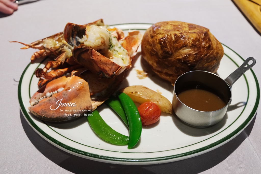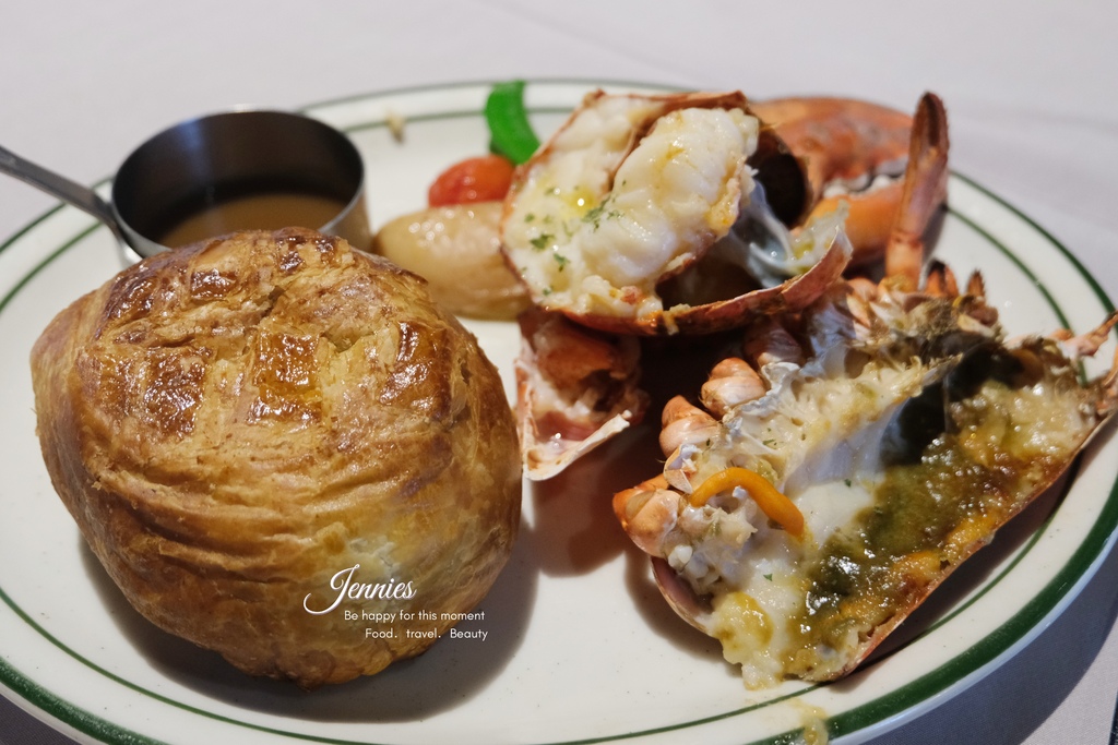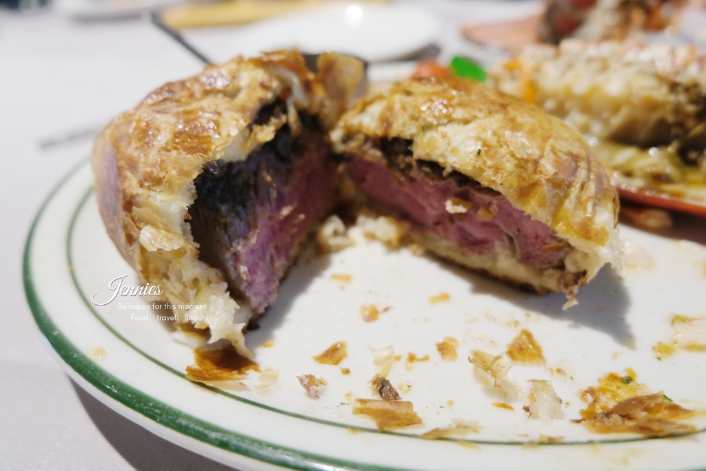龍蝦肉吃起來很飽滿肉質Q彈,單吃就非常好吃,威靈頓牛排吃起來帶有酸味,不知道是不是因為以紅酒下去料理,那個酸的味道我不是很愛。