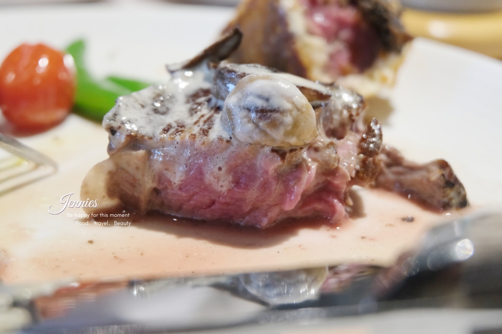 五分熟不見血的牛排,我個人覺得比Wayne’s New York 瑋恩紐約美式龍蝦牛排餐廳的牛肉要好吃,上次在Wayne’s New York吃牛排的經驗不是太好(第一次吃到肉咬不斷還帶筋的牛肉有點噁)