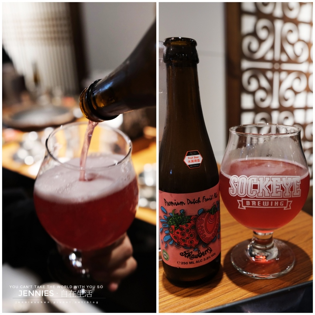 ABV韓式餐酒館將道地的韓式料理還有精釀啤酒巧妙結合,不同於我們的想像海鮮煎餅一定要配韓式燒酒嗎?可不!這天我搭的就是法國白朗峰藍莓啤酒,比化學味道較重的韓國酒要好多了!!搭配烤的滋滋作響的豬五花肉,肥瘦均勻油脂香,咬下去還會滲出肉汁,鹹香之餘的水果酒意外合搭(吼搭啦!!)