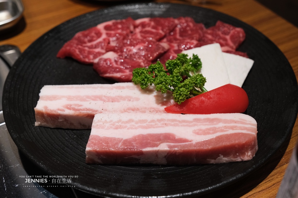 烤肉類提供了梅花豬、厚切豬五花、霜降松板豬、雪花牛、牛肋條、翼板牛等等,豬肉的選擇比較多,此外也有調味過的蔥醬豬五花、調味LA牛小排等,喜愛吃肉的你不要錯過囉~