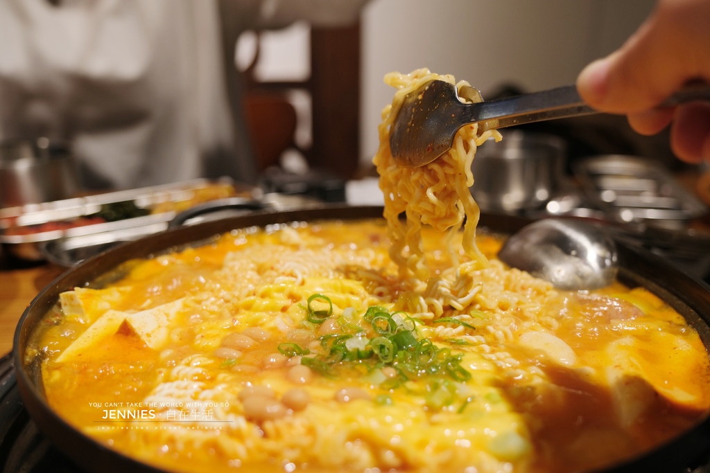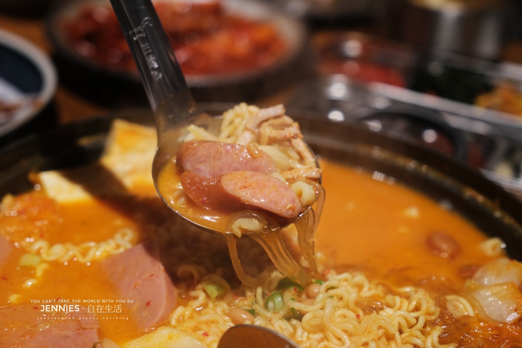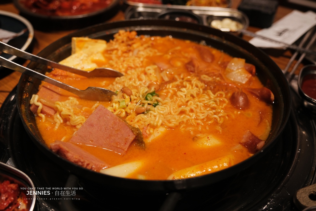 泡麵、年糕、起司、豆腐、金針菇等豐富配料,搭上濃厚辛香的韓式辣湯頭,每一口都是溫飽與創意交織的歷史軌跡。熱騰騰的鍋上桌時香氣四溢湯汁濃郁,部隊鍋不只是料理,它象徵了韓國人在困頓中創造希望的精神,也成為今日朋友聚會時最熱烈的一鍋。
